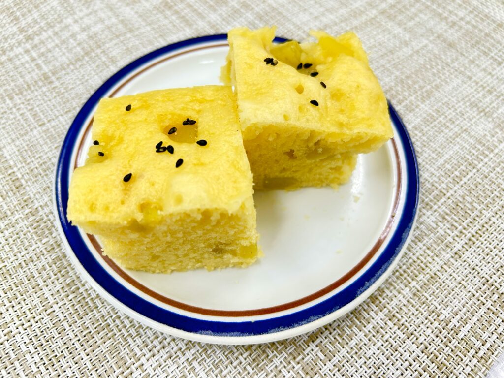 この時期に旬を迎えるさつまいもを使用し、栄養士特性の「蒸しパン」と「いもようかん」をご提供いたしました。